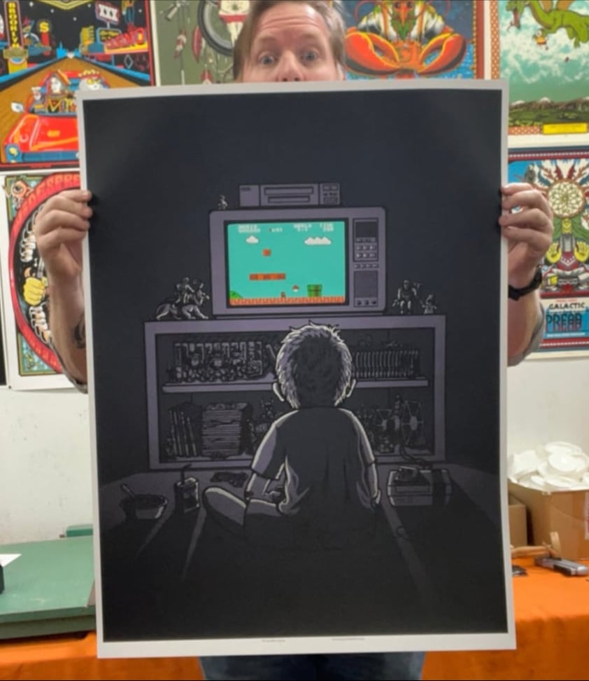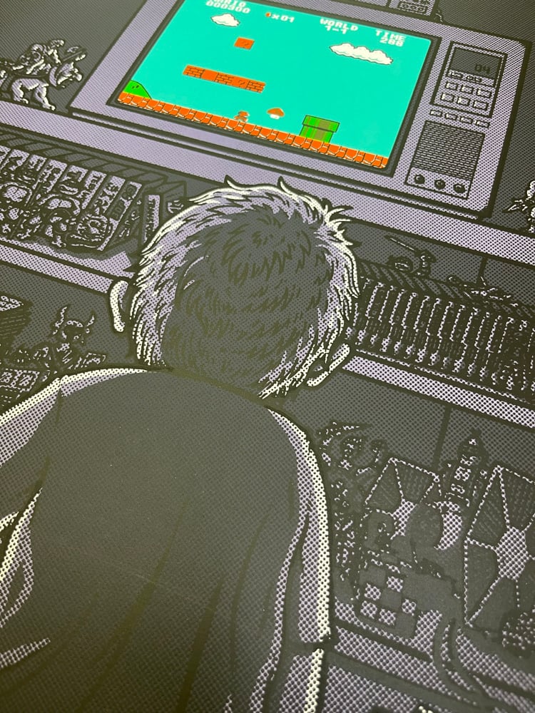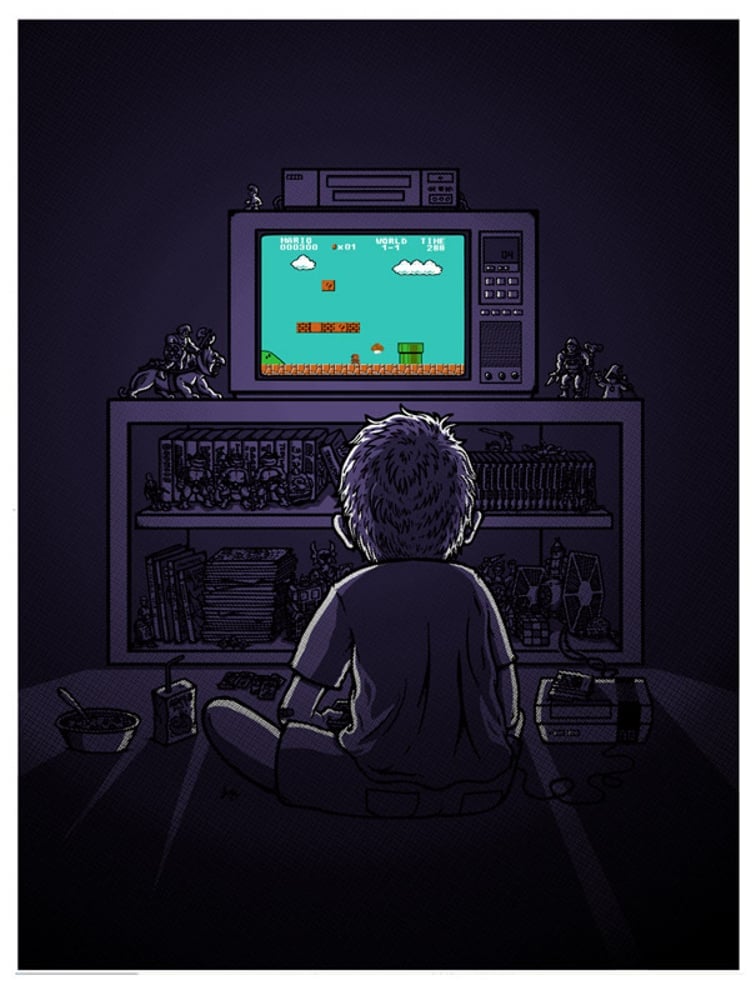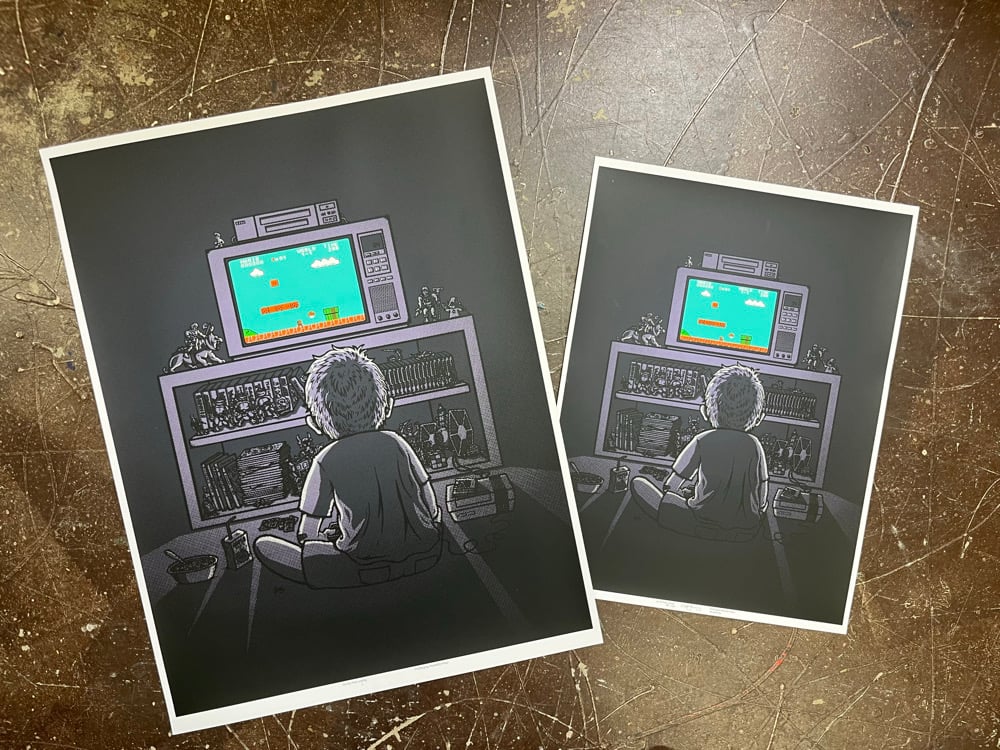 Created as a commemoration of my childhood and all the hours sitting in the dark working my fingers to death collecting mushrooms, bombing through walls and shooting ducks. Here's to all my 80's & "indoor kids"